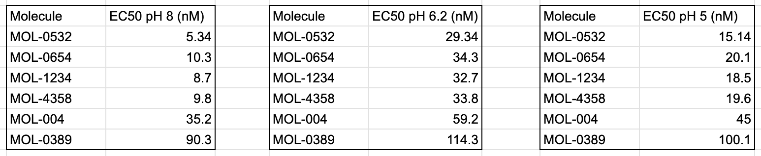 Take, for example, these three tables with data from a recent set of example experiments: