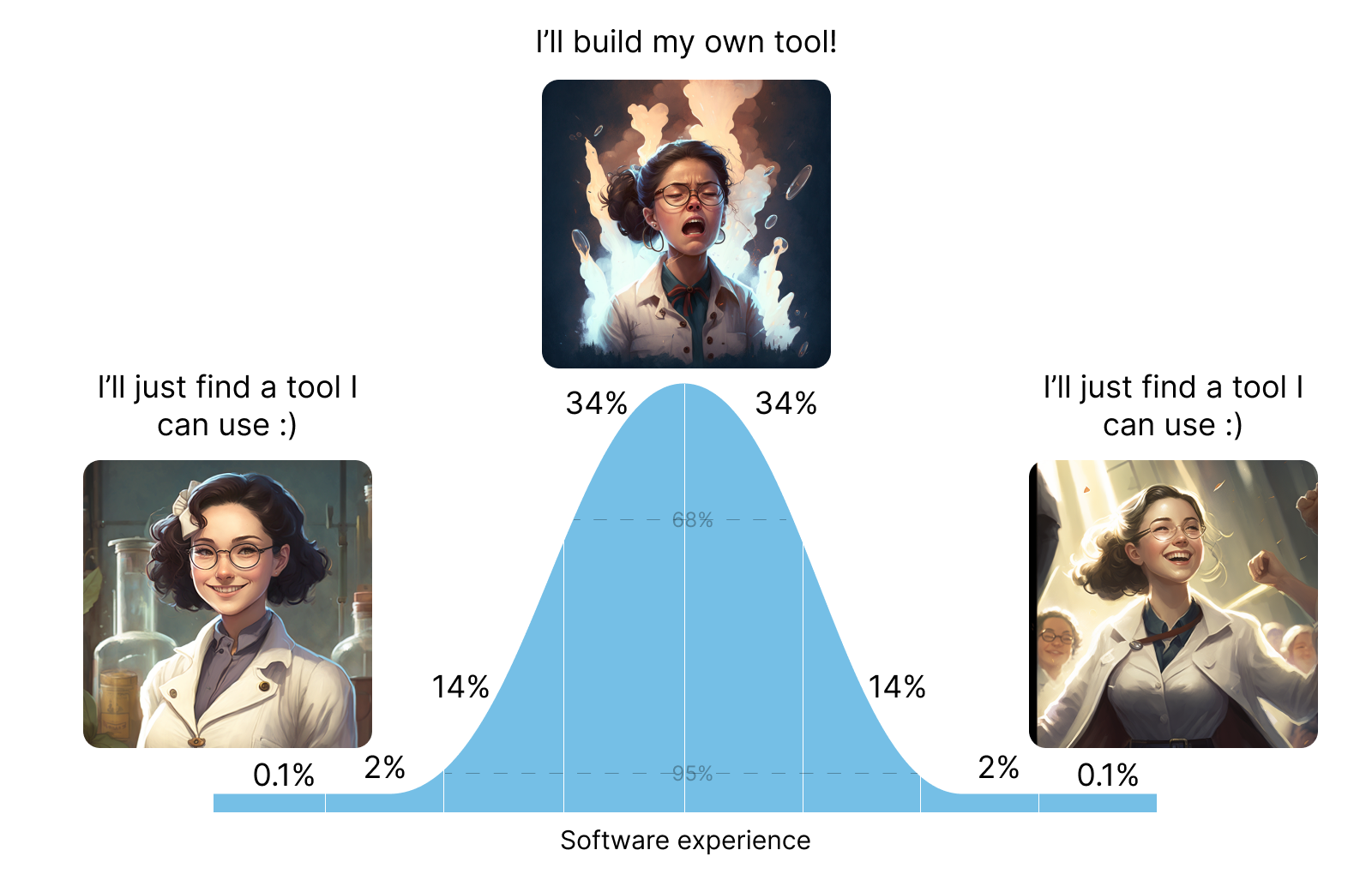 Effectively, by building internal tooling that you plan on actively using, you’re committing to running a software company within your biotech. Not only is this extremely expensive in terms of direct costs, but it’s also a big distraction from the work that matters. As a therapeutics company, for example, your focus is on doing great science: generating results, testing hypotheses, advancing/de-risking your assets, and ultimately working towards developing and commercializing drugs that will treat disease. Your team is built around this objective and hires are made from the perspective of bolstering the company’s core competency. Even if you’re hiring engineers or data scientists, their expertise most likely lies elsewhere — they are likely not product managers, designers, or web application or product engineers. Unless the software is part of your core IP, spending time and money refocusing people to build internal tooling is the wrong thing to do.